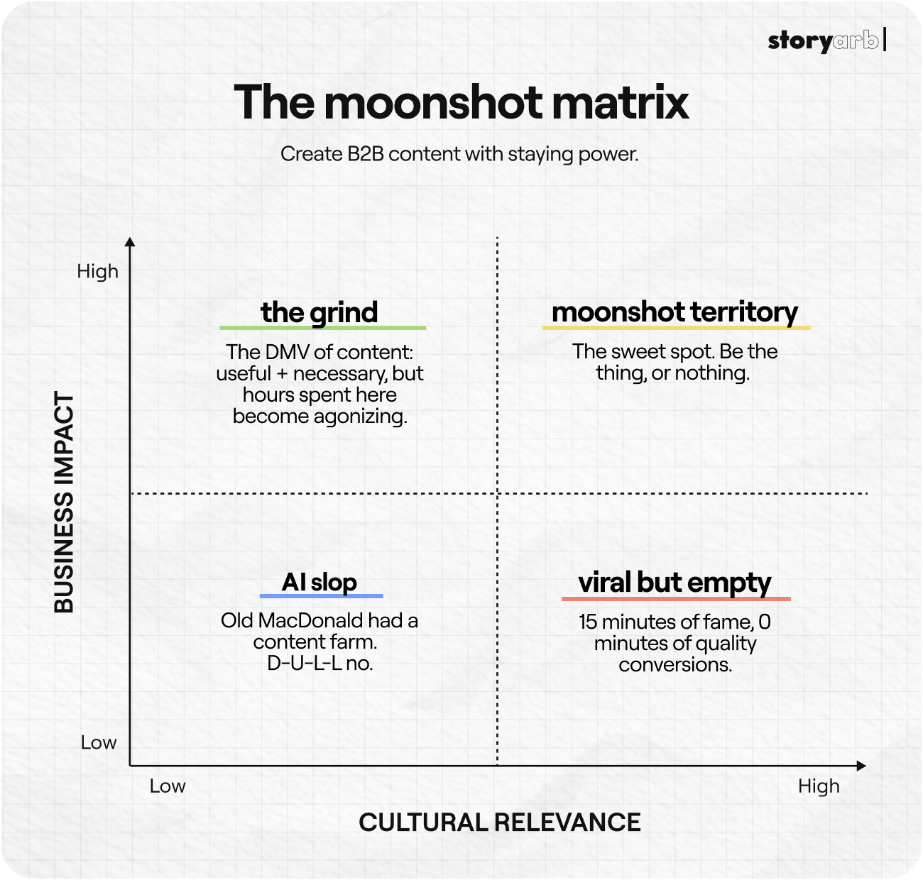 Ariel measures marketing ideas across two axes at once: business impact and cultural relevance. Or as we call it, the moonshot matrix.
